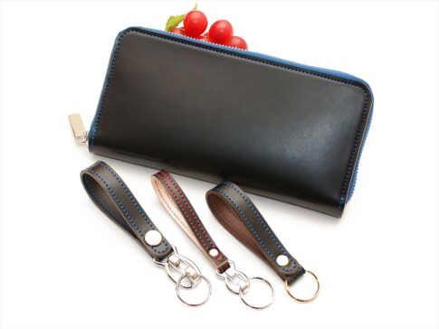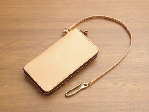 OM-640 【フルオーダー】ラウンドファスナー長財布+ウォレットロープ 外周手縫い仕様 栃木レザーS級ナチュラルヌメ牛革