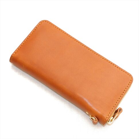 OM-642 ラウンドファスナー長財布+Dカン 外周手縫い仕様 栃木レザーキャラメル牛革