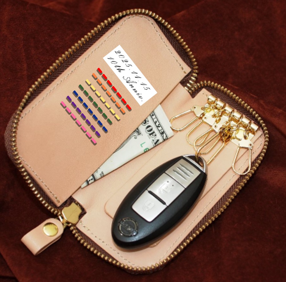 飾りステッチ7色:(上から)赤・オレンジ・黄・緑・青・紫・ピンク/加工場所:見開き内側の左部分下