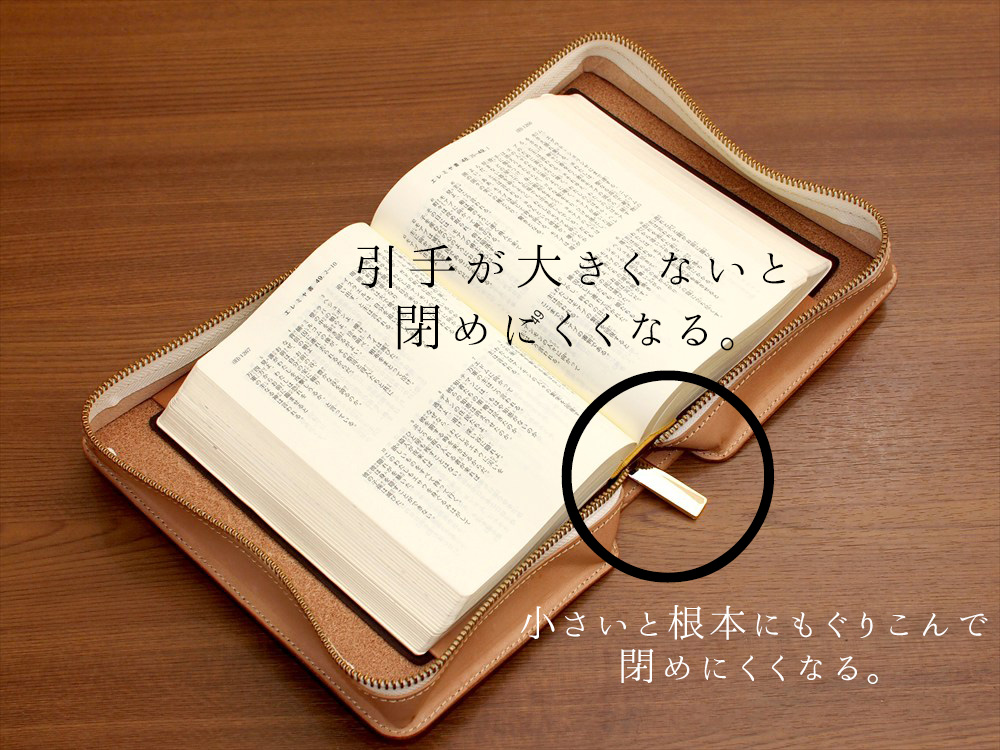 引手が大きくないと「ファスナー閉めるときに引手を取り出しにくい状態」になります。