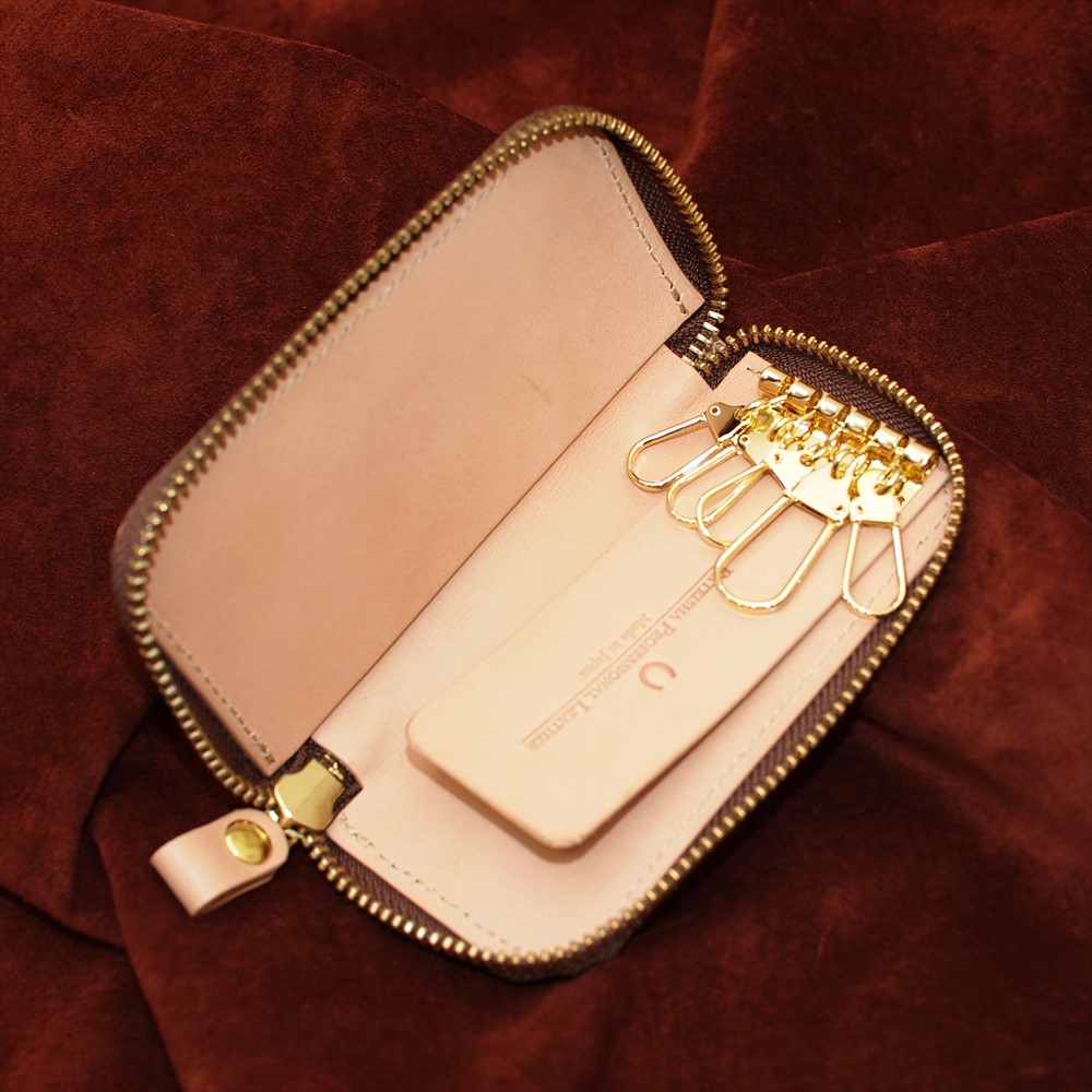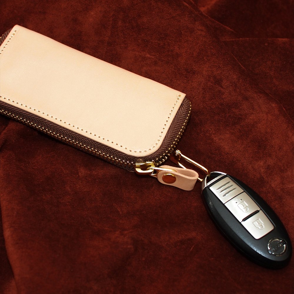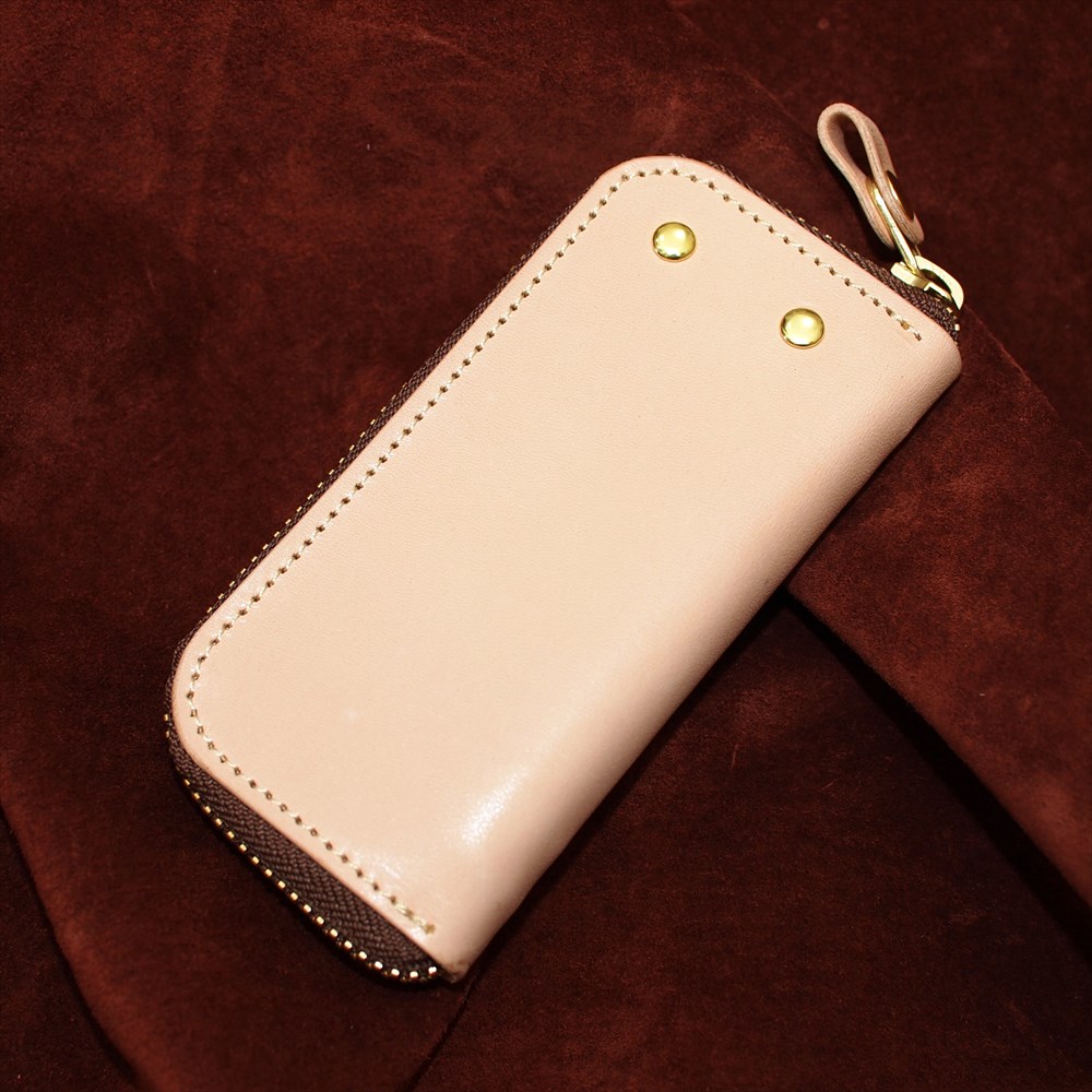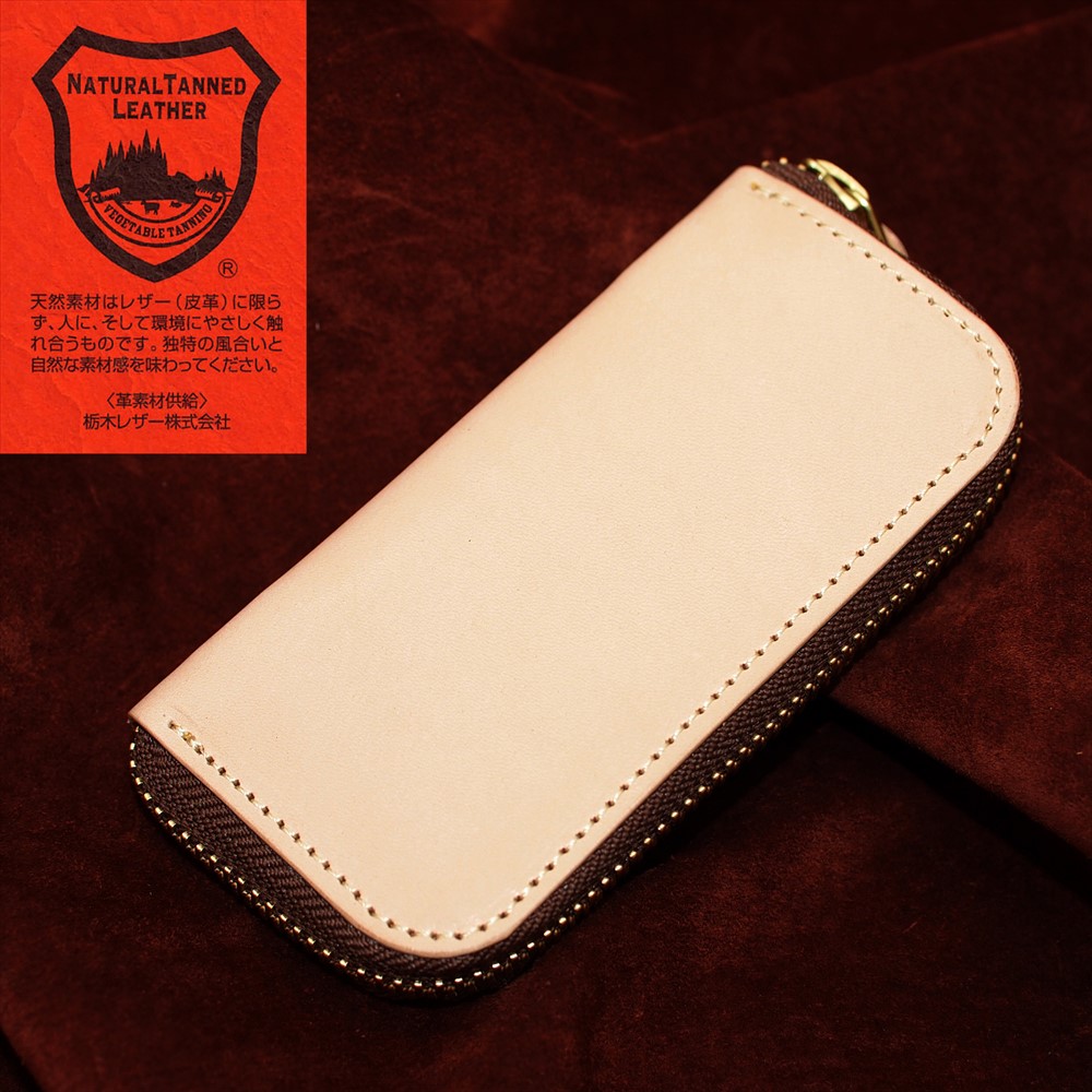 OM-325 栃木レザーナチュラルヌメ牛革ラウンドファスナーキーケース