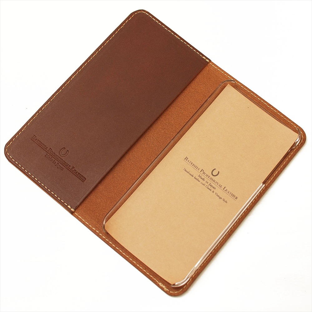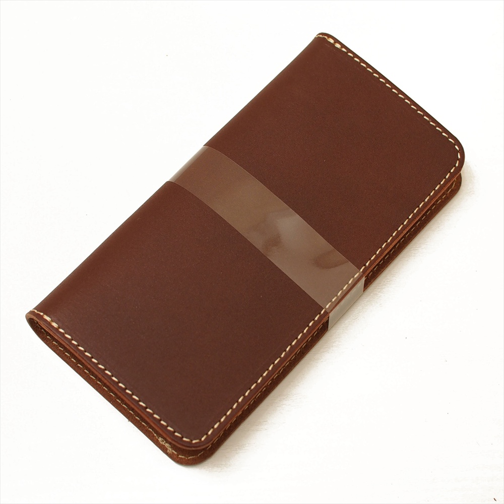 OM-597 手帳型スタンダードスマホケース 姫路レザーチョコ牛革
