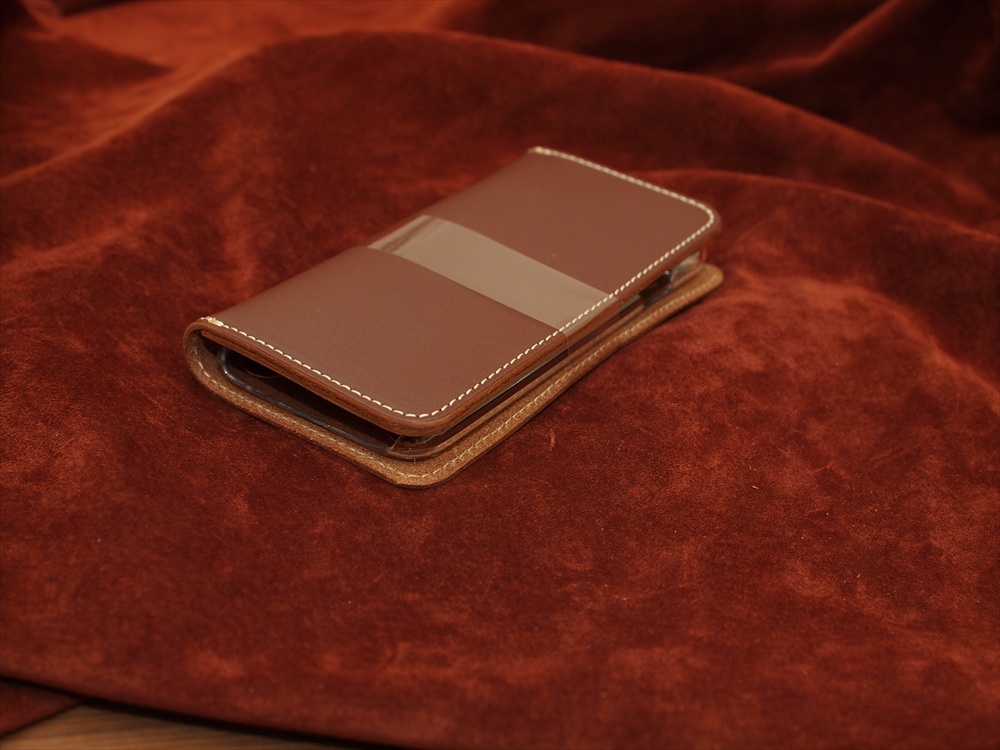 • OM-597 手帳型スタンダードスマホケース 姫路レザーチョコ牛革