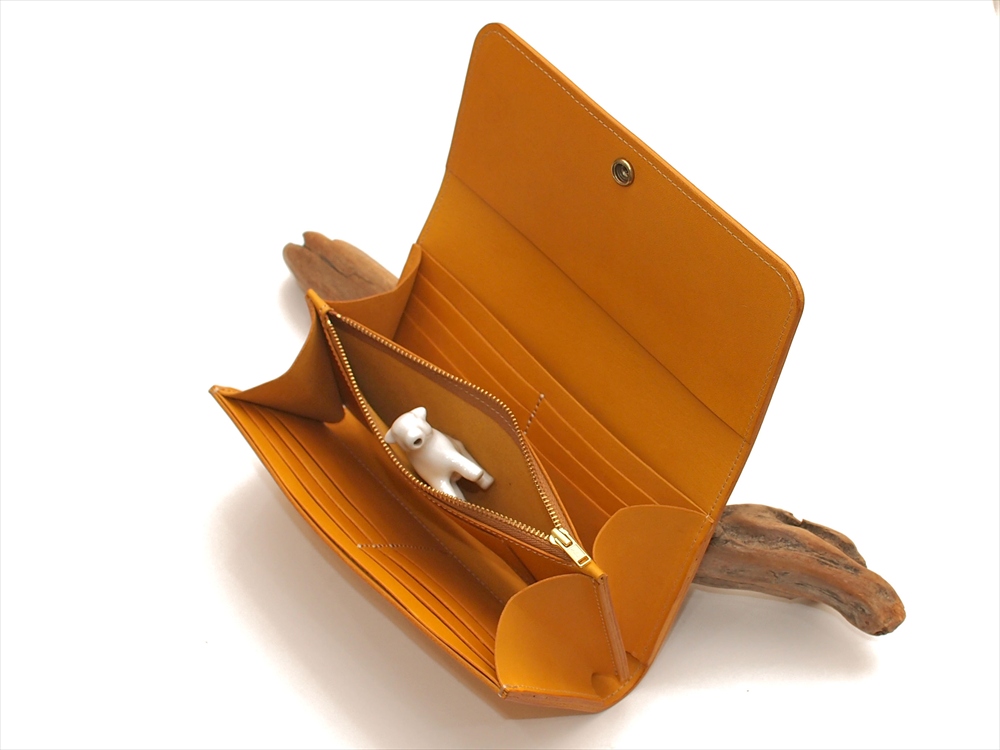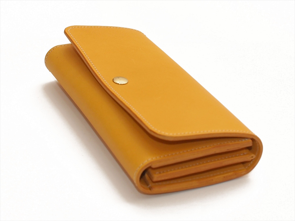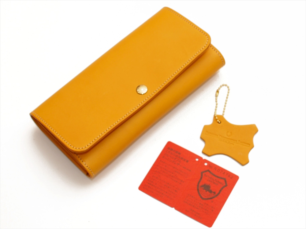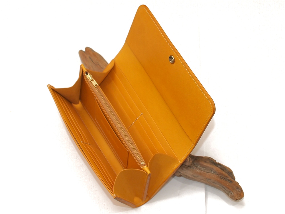 OM-639 【両銀面プレミアム仕様】栃木レザーマスタードイエロー牛革三つ折り長財布