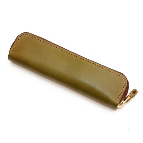 OM-644 栃木レザーカーキ牛革ラウンドファスナーペンケース
