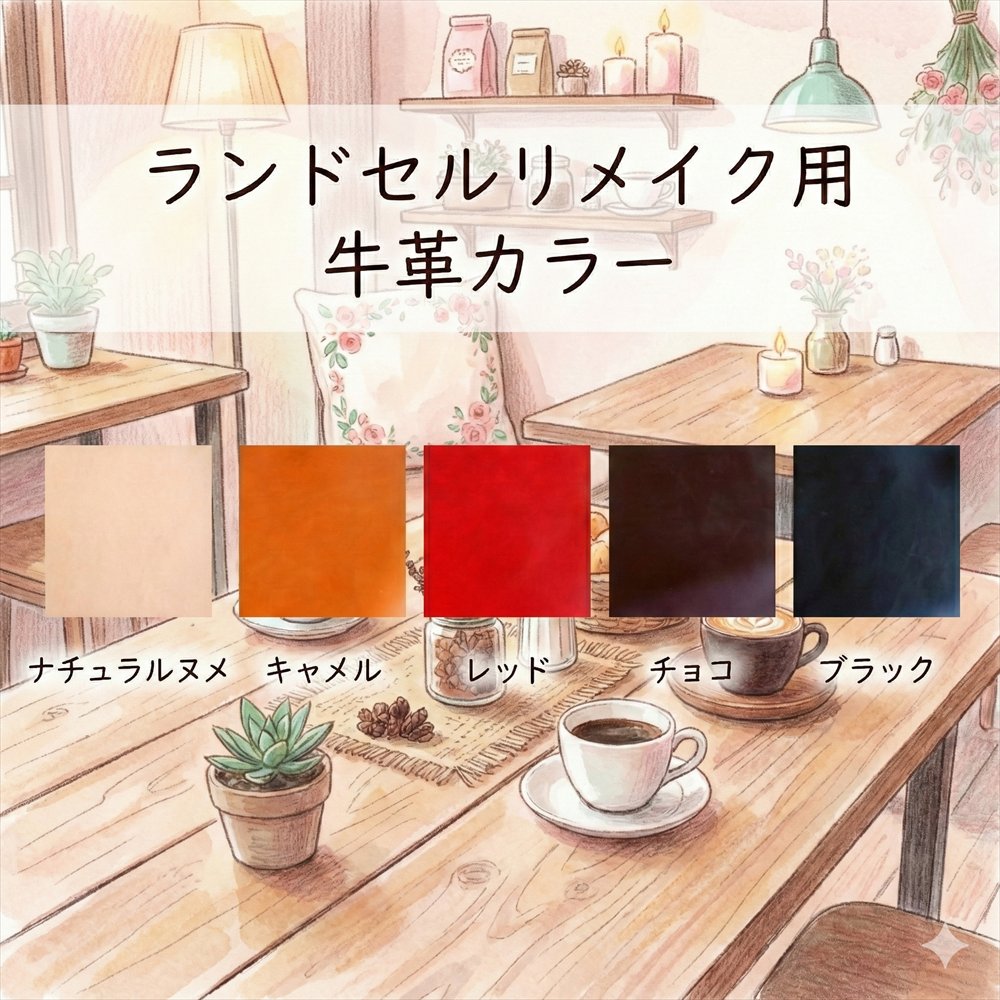 表部分はランドセルのフタ部分もしくは側面部分を使用し、内のコインケース部分は当工房用意の牛革素材で仕立てます。