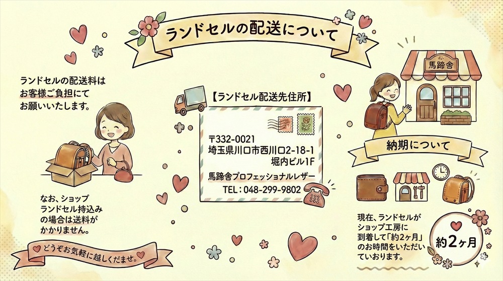 ※ランドセルの特長部分(刺繍部分等)を活かしたデザイン製法です。